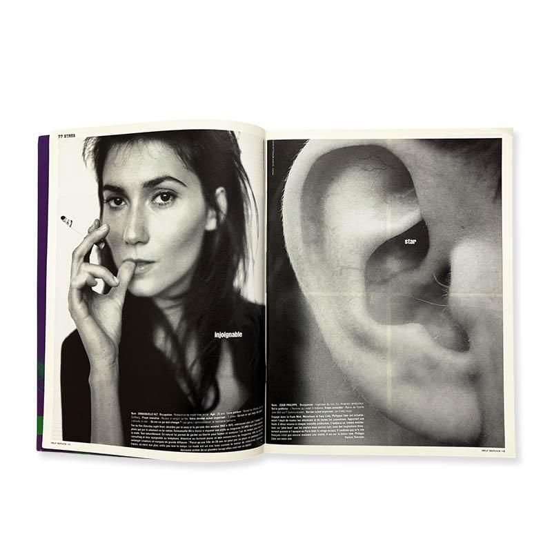 Self Service is an independent magazine based on the design studio Work In Progress, founded by Ezra Petronio and Suzanne Koller. The fourth issue was published in Fall 1996. The cover features Amy Wesson photographed by Mark Borthwick. The editorial design, including the use of fonts, slightly tilted text, and photo layout, remains innovative even today.