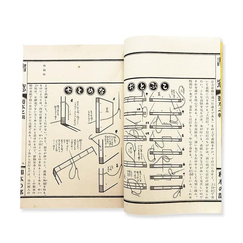 1935年に志茂太郎(1900-1980)が主宰する出版社アオイ書房から発行された雑誌『書窓』の第11巻第2號。会員限定の頒布方式で、書を愛するビブリオマニア向けの内容で装本、印刷に関する特集も多く組まれた。本書では製本の方法を指南する教則本的内容となっている。製本界の名人・上田徳三郎の口述に、童画の生みの親・武井武雄(1894-1983)が図解を担当している。構成は和本の部と洋本の部で分かれており、図解も相俟って理解しやすい。