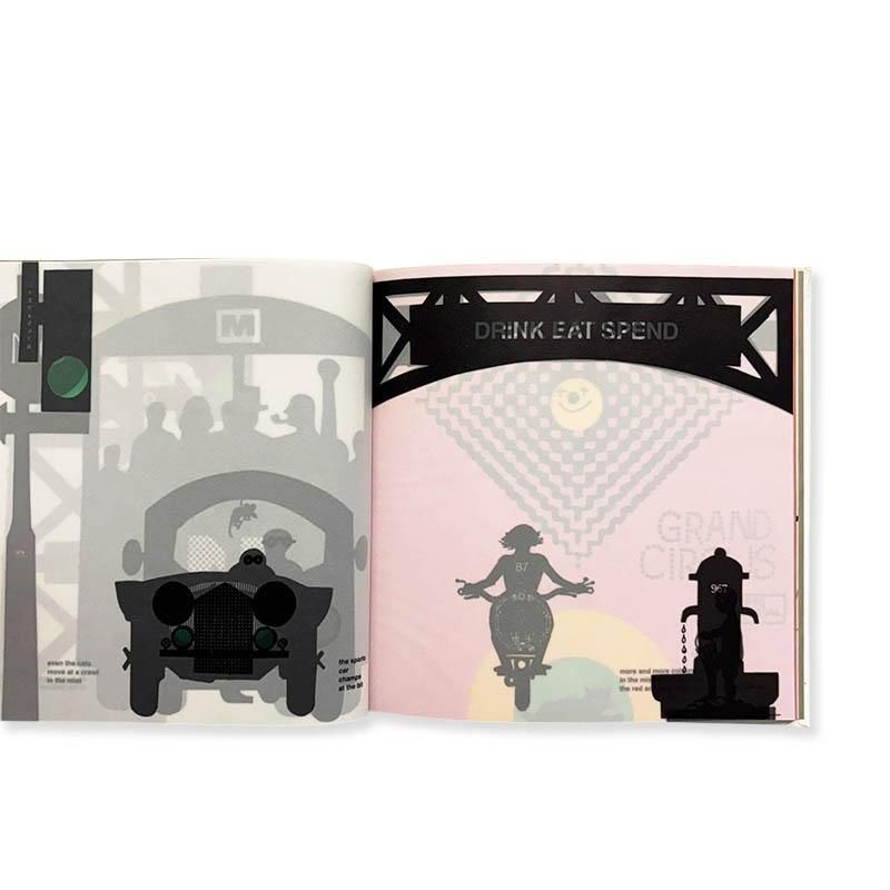 ブルーノ・ムナリ(Bruno Munari 1907-1998)は画家やグラフィックデザイナーの仕事で培った技術を活かして、視覚と触覚の関係を重視した子どものための絵本制作にも力を入れていた。「ミラノの霧の中で」と題された本書では、トレーシングペーパーを重ね、めくると次第に数ページ先の絵がはっきりと見えてくるような仕掛けが施されている。言葉を使わずに物語を伝える彼のアイデアが現実化している。初版は1968年に発行されたが、こちらは2000年の第二版の英語版。