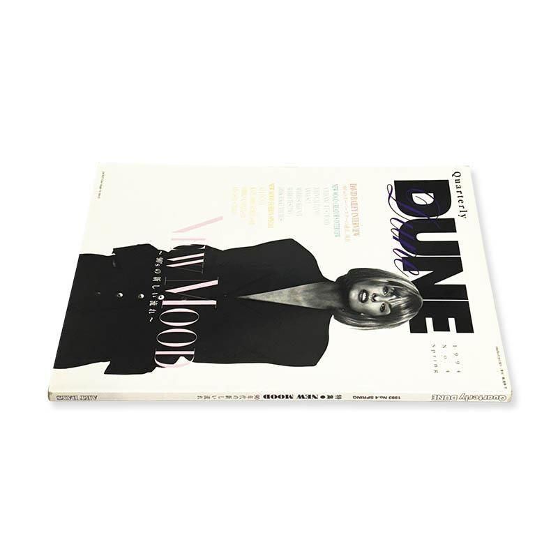 1993年に編集者・林文浩(1964-2011)が主宰の出版社アートデイズから出版されたファッション・カルチャー誌『デューン』の第4号。林は編集長に就任している。「NEW MOOD」をテーマに、デヴィッド・ベイリー、ヴィヴィアン・ウエストウッド、ジョン・ガリアーノ、アナ・スイ、マリオ・ソレンティ、マリオ・テスティーノ、ダーク・ビッケンバーグのインタビュー記事あり。